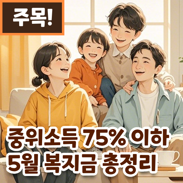 💡 중위소득 75% 이하가 받을 수 있는 5월 복지금, 어떤 게 있을까요?